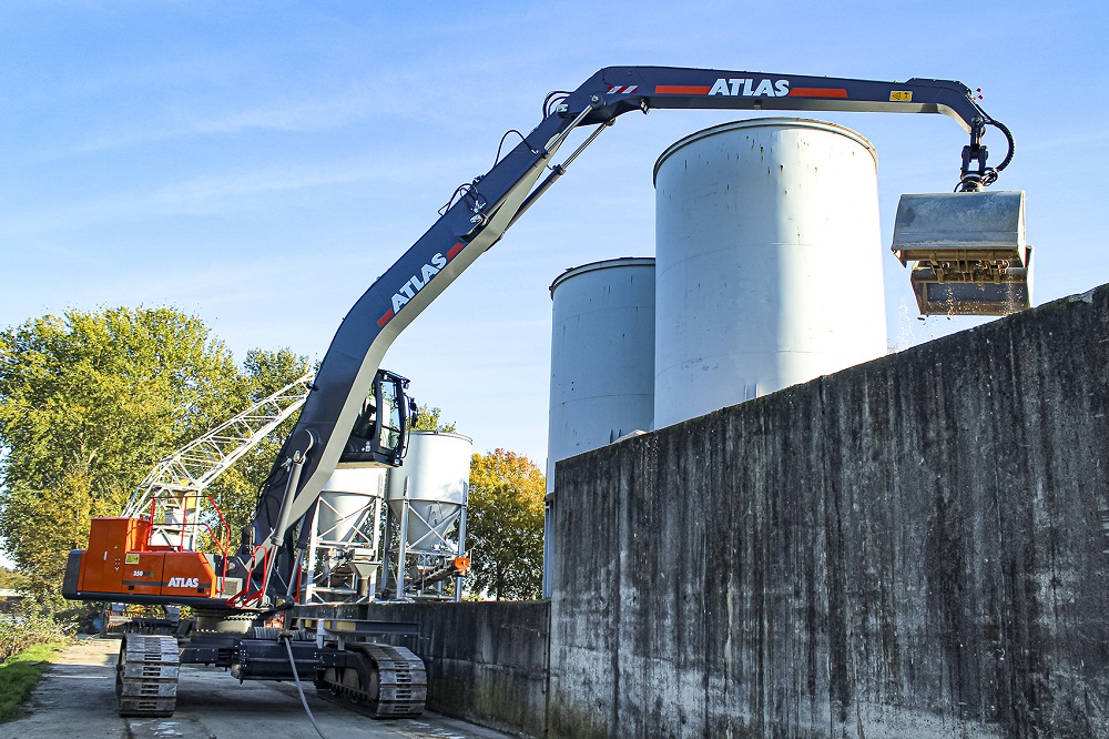 Dieker Overslag B.V. uit Haghorst heeft onlangs, via Hans van Driel in Tiel, een elektrische Atlas 350MHE overslagmachine in gebruik genomen. De Atlas 350MHE is afgeleverd zonder onderwagen met banden maar gemonteerd op een bestaande rupsonderwagen. De beperkte breedte van het werkgebied is de reden voor deze bijzondere oplossing. De volledig elektrische Atlas doet geen concessies ten opzichte van een conventionele machine.