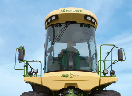 Ruim ontworpen en stil van binnen – de nieuwe KRONE-cabine biedt praktisch alles wat de bestuurder nodig heeft om lange werkdagen, tot diep in de dacht, te kunnen maken. De cabine is ontwikkeld volgens de laatste ergonomische normen, biedt voldoende ruimte en wordt standaard geleverd met passagiersstoel, automatische airco en een elektrische koelbox. Alle bedieningselementen zijn logisch ingedeeld in de buurt van de bestuurdersstoel. Op deze manier heeft u alles in beeld en perfect onder controle.