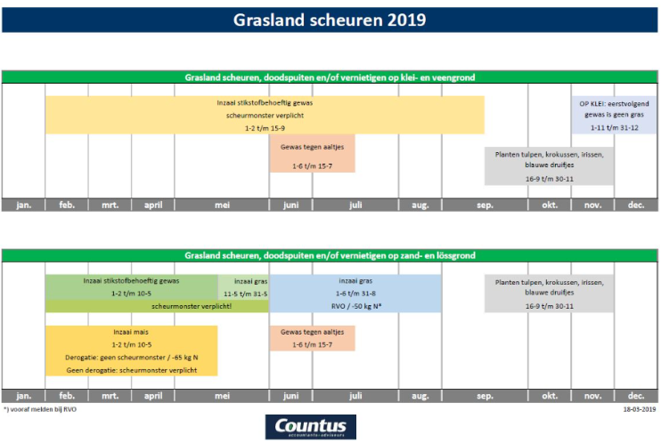 Voor zand- en lössgrond geldt dat je van 1 juni tot en met 31 augustus grasland mag scheuren als je direct daarna weer gras inzaait. Een scheurmonster is in deze periode niet nodig.