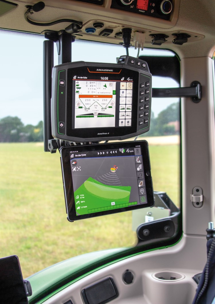 Veel functies van een machine worden bediend via een bedieningsterminal. Naast de standaard machinebediening zijn er nog andere toepassingen mogelijk zoals automatische sectieschakeling of de verwerking van applicatiekaarten. Hierdoor moeten de gebruikers vaak wisselen tussen verschillende interfaces, zoals het werkmenu, opdrachtenbeheer of de kaartweergave op de terminal. Met de nieuwe AmaTron Twin-app maakt AMAZONE een kosteneffectieve schermuitbreiding mogelijk voor de ISOBUS-terminal AmaTron 4 voor een gemakkelijkere weergave van het veldaanzicht door de integratie van een mobiel apparaat.
