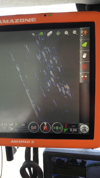 Met AmaSelectSpot worden de kaarten ingeladen. Voor deze terminal worden speciale spuitdoppen, met een onderlinge afstand van 25 centimeter, gebruikt. Elke sectie is vijftig centimeter. Er wordt onder een hoek van ongeveer veertig graden gespoten. Hierdoor wordt overlap en daarmee over- of juist onderdosering voorkomen.