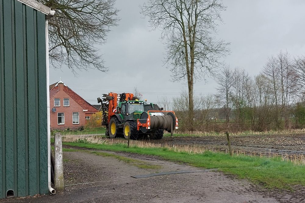 “Deze foto is afgelopen voorjaar genomen achter het plaatsje Grootegast. Dit is een beetje de rand van ons werkgebied, want we komen zelf uit Oldehove. Die dag werkten we eerst op een andere locatie en zijn later naar dit perceel gegaan. Het was een stuk land van circa drie hectare, waar mais heeft gestaan. Het waren extreem natte omstandigheden, maar het liep verder mooi door.”