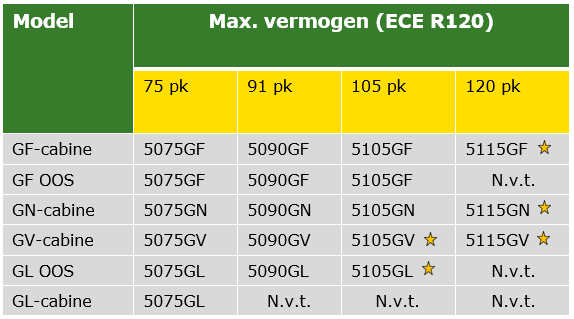 De tractoren met minder dan 75 pk hebben al de niveau V-update gehad, waarbij de bekende en bewezen eigenschappen van de voorgaande modellen behouden bleven.