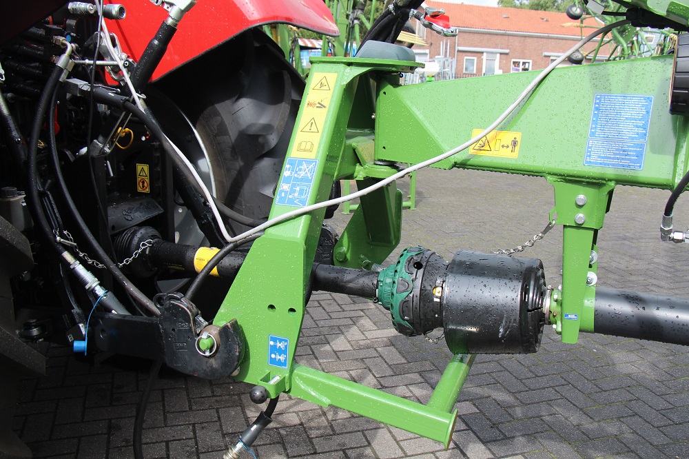 De Swadro TC 1250 behoeft geen load sensing hydrauliek en kan toe met een enkelwerkend en een dubbelwerkend hydrauliekventiel. De werkdiepte stel je per rotor in met behulp van een spindel en een schaalverdeling. De bodemontlasting van de voorste rotoren stel je hydraulisch in vanuit de cabine en bij de achterste rotoren gaat dit mechanisch met ontlastingsveren. De werk- en zwadbreedte stel je in met het eenvoudige schakelaarkastje in de cabine. Daarmee vouw je de hark ook uit en in.