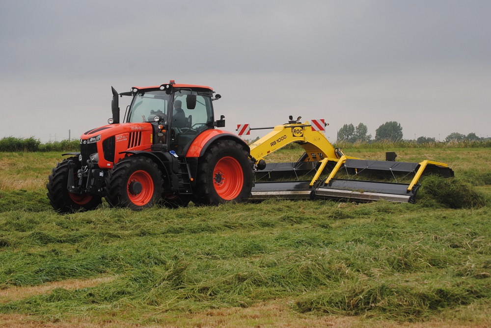 De RS1000 werd door Kverneland Group, dat eind 2021 tachtig procent van de aandelen in de Italiaanse bandharkenfabrikant overnam, op een speciale demo in Hazerswoude-Rijndijk aan het werk gezet. “Echt een machine voor Nederlandse loonwerkers”, aldus Alexander Schneider van ROC.