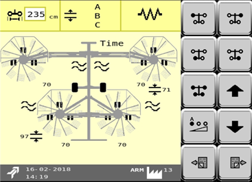 Dankzij de ISOBUS bediening, is de Andex 1304 PRO ook uitgevoerd met een elektrische hoogteverstelling op de rotoren. Hierdoor is de machine eenvoudig instelbaar voor verschillende werkomstandigheden.