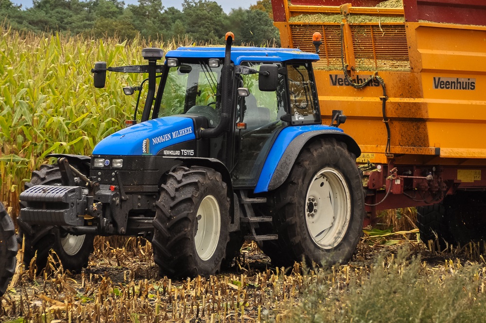 De New Holland TS 115 wordt nieuw gekocht in het najaar van 2003. Gekozen wordt voor de versie met turbo. “De turbo geeft net die paar pk extra waardoor hij wat makkelijker uit de voeten kan met de Veenhuis silagekipper van ruim 37 kuub inhoud”, zegt Paul Heesmans. Het is de bedoeling dat Heesmans (38), schoonzoon van Jan Nooijen, het bedrijf in de toekomst gaat overnemen.