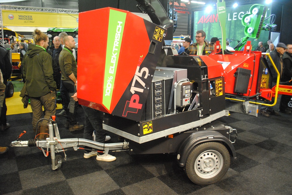 Hissink Oeken toonde voor de Groene Sector Vakbeurs verschillende innovaties. De TP175 bleek op de stand de blikvanger. Dat de versnipperaar honderd procent elektrisch is, is niet nieuws. Dat die nu kan draaien op het onderstel wel.